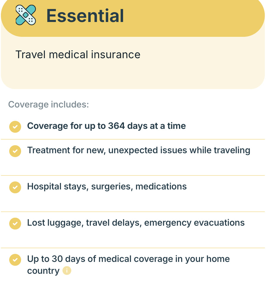 SafetyWing’s Essential cover is a good start for your travel insurance. This is their first tier of coverage.