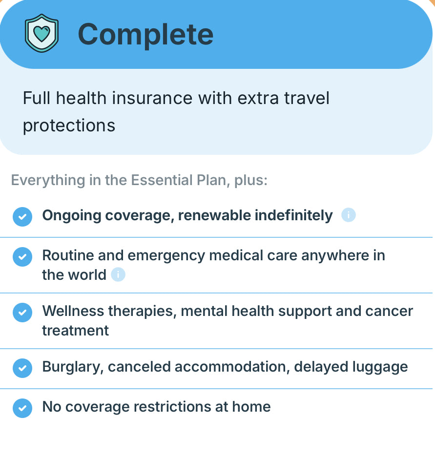 SafetyWing’s Complete Cover includes extra protection for you trip. Perfect if your trip doesn’t have a definite end date.